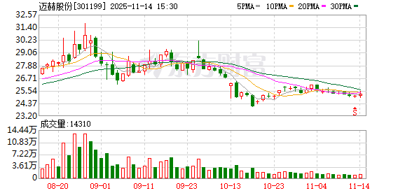 截至发稿,迈赫股份股价为25.21元/股,总市值47.06亿元。