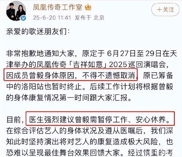 不过意外的是,在事情发酵之后,凤凰传奇的演唱会忽然取消了。 声明上说是因为曾毅的身体原因,但是真正因为什么,大家都心知肚明。 本以为风波过去之后,凤凰传奇的演唱会就会继续进行。 然而越来越多的粉丝选择脱粉,甚至两人连合体都成为奢望。