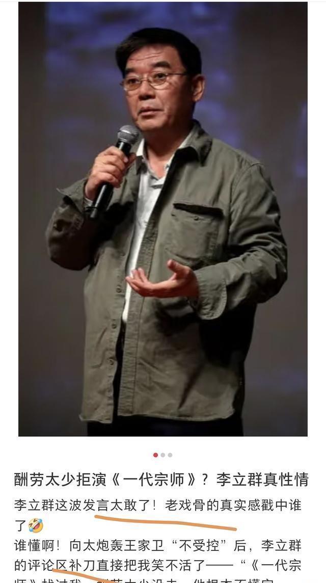 李立群则被网友发现早有吐槽,他曾直言没看懂《一代宗师》,否认“落井下石”;