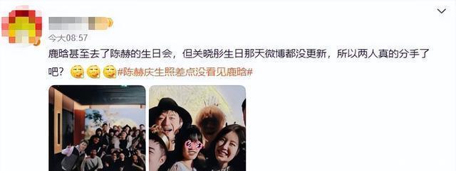 自从陈赫的这张照片发出之后,网友也再次对两人的感情进行了猜测,不少网友直言称,鹿晗去了陈赫的生日会,也没有给关晓彤微博送祝福。 恐怕二人早就已经分道扬镳了,二人近日来的种种迹象,也仿佛隐喻着这段感情的现状,他选择隐身,她忙着修饰表面。