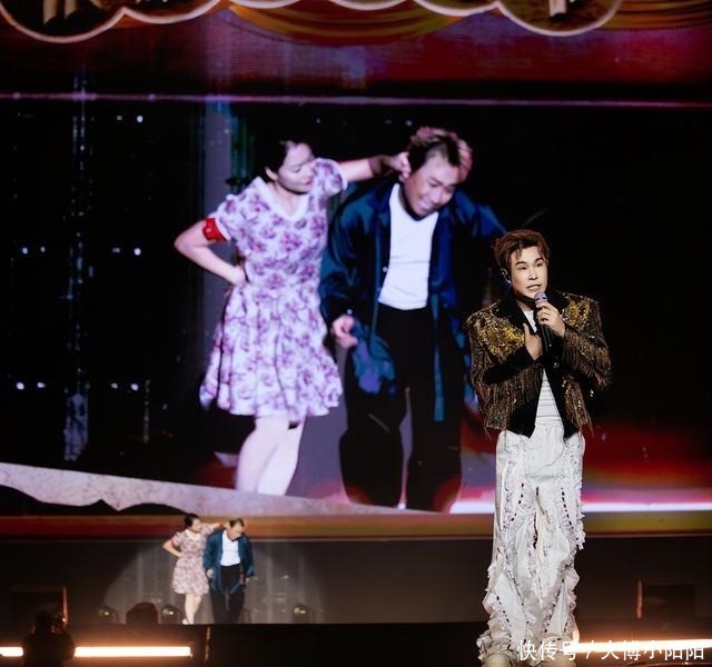 转眼间就看见他又换了一身穿搭,身后还有一对饰演夫妻的演员在配合他这首歌的布景,