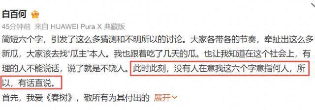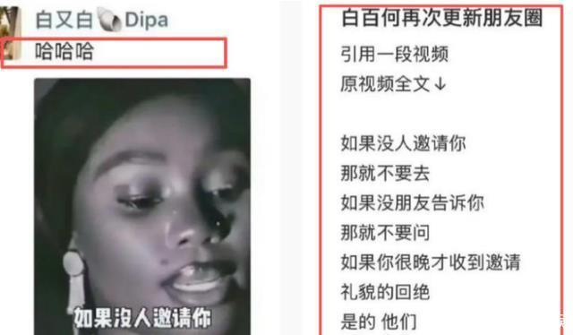 这也难怪,白百何在网上连续多次发微博,发朋友圈嘲讽。比如“还可以这样操作”“得鱼忘筌”(意思和过河拆桥一致),还上传一段人生感悟的独白。