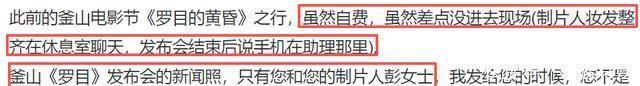 白百何又讲述了上一次《罗目的黄昏》参加釜山电影节自己遭受的委屈,称自己是自费参加。差点没有进去现场,而制片人则装发整齐在休息室聊天,(应该是吐槽联系不上制片人)。白百何吐槽,釜山《罗目》的新闻照,也只有导演和彭瑾,却没有自己。而自己把照片发过去,对方假装惊讶,质问难道自己自费过去就是为你们鼓掌,和看你们不专业的操作?
