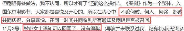 当然,小海猜测,彭瑾让白百何提前回国一事,可能还有一种可能。就是彭瑾得到小道消息《春树》并未获奖,为了照顾白百何的情绪,让她提前回国。而出于对电影节的礼貌带几位其他演员坚持到最后,没想到后面却获奖了。如果是这种情况,彭瑾和张导当尽快发文解释,避免进一步误会。